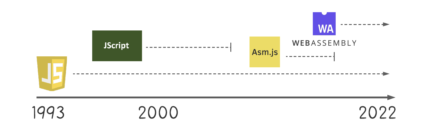 In 2013, Mozilla introduced asm.js, which allows developers to write code in C/C++ and transpile it to javascript and integrate it into browser applications. With asm.js, web developers get the performance advantages of these lower-level languages, like manual memory management and compilation-time optimizations. While asm.js enabled better performance and C/C++ portability, it had its drawbacks including the need to transfer full-fledged javascript over the wire and the tight coupling of the language subset to its parent.